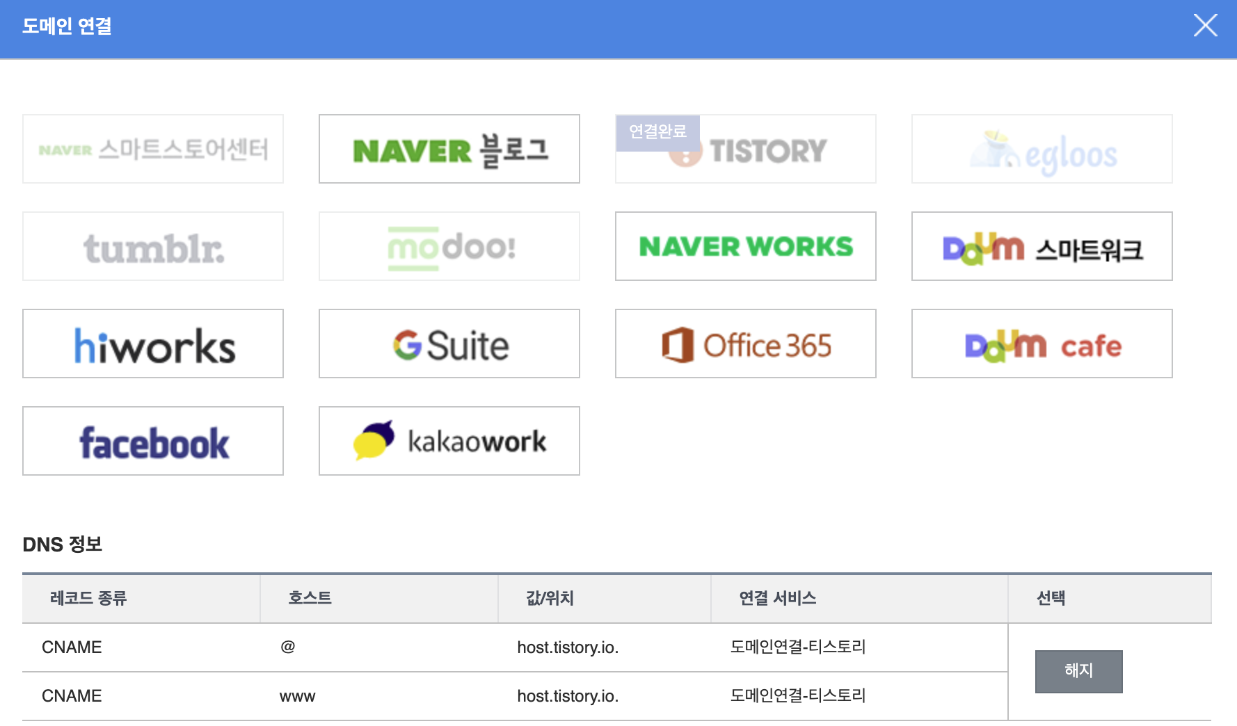 방법 1. 가비아에서 하위 도메인을 만든 후 내 티스토리 블로그에 하위 도메인 주소를 넣어준다.