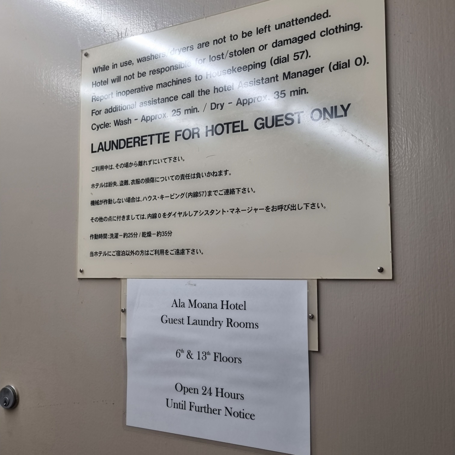우선 알라모아나 호텔에 세탁실은 두 군데 있어요. 하나는 6층에 있고 다른 하나는 13층에 있습니다. 저는 13층을 이용했어요.