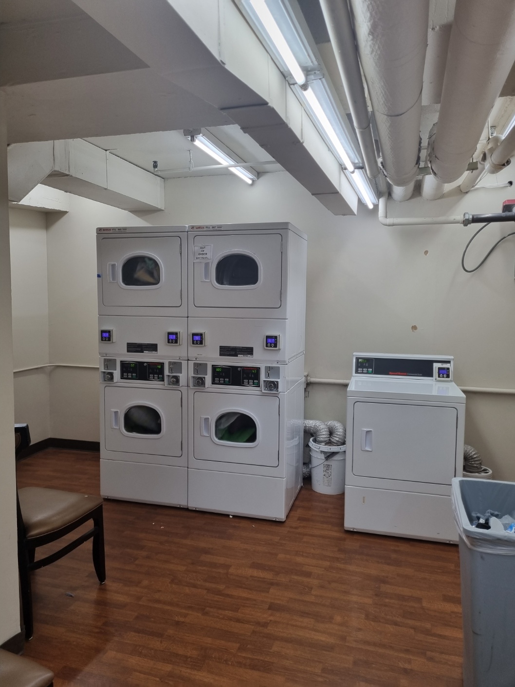 건조기는 세탁실 오른쪽에 2층으로 쌓여있습니다. 처음에는 우리나라 트롬처럼 위, 아래가 각각 건조기, 세탁기인 줄 알았지만 그렇지 않습니다.