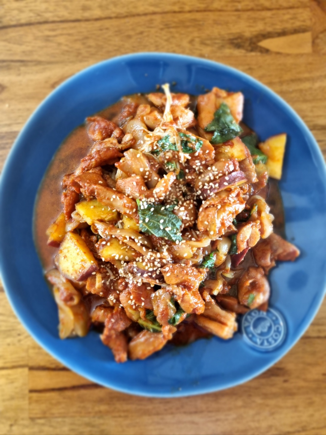 사실 닭갈비만 익혀 먹을때도 많은데 오늘은 사진을 찍어보겠다고 양파, 팽이버섯, 깻잎도 넣었어요. 초등학생들이 아주 잘 먹네요.