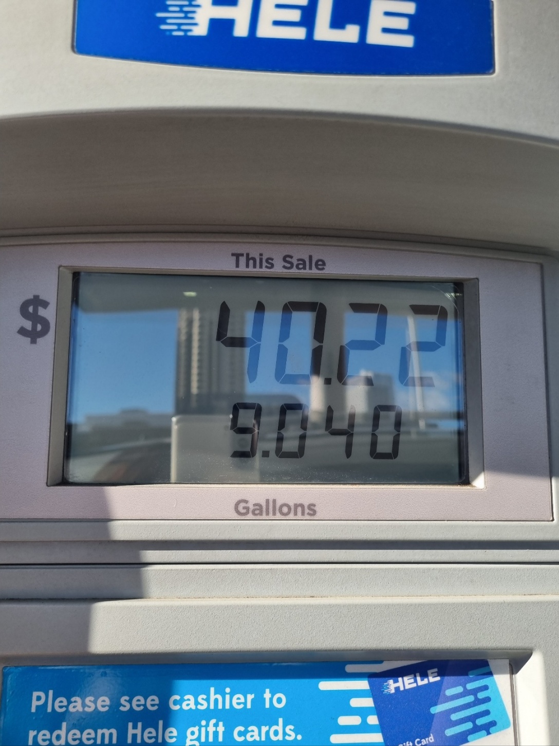 • 주유가 완료되니 40달러 들어갔네요. 이제 캐셔에게 가면 남는 돈 거슬러 줍니다.