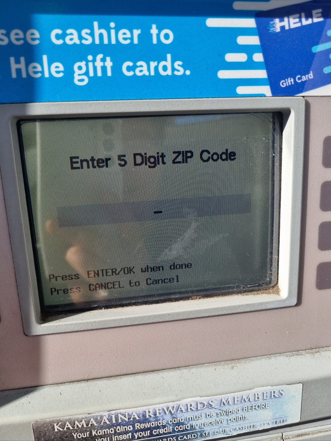 셀프 주유소에서 금액이나 리터를 입력 후 신용카드 결제를 하려면 문제가 생기는데요. 우선 한국처럼 마그네틱을 사용하지 않고 ic 카드만 있는 경우에는 결제를 진행할 수가 없습니다. 또한, 진행된다고 하더라도 다음과 같이 zip코드를 넣으라고 나옵니다.