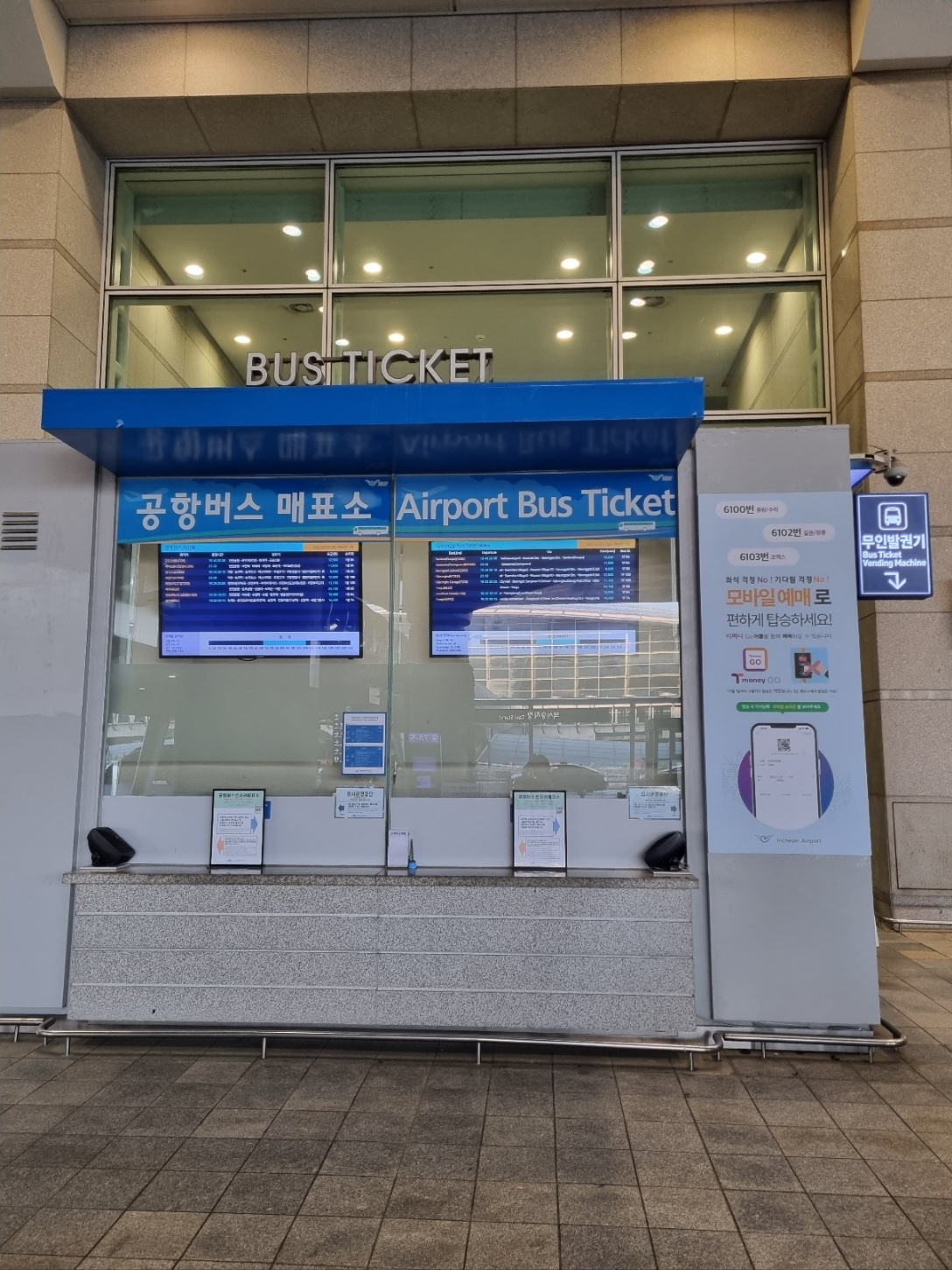 밖으로 나오시면 이렇게 매표소가 있습니다. 공항 안에도 매표를 하실 수 있는 키오스크가 많이 설치되어 있습니다.