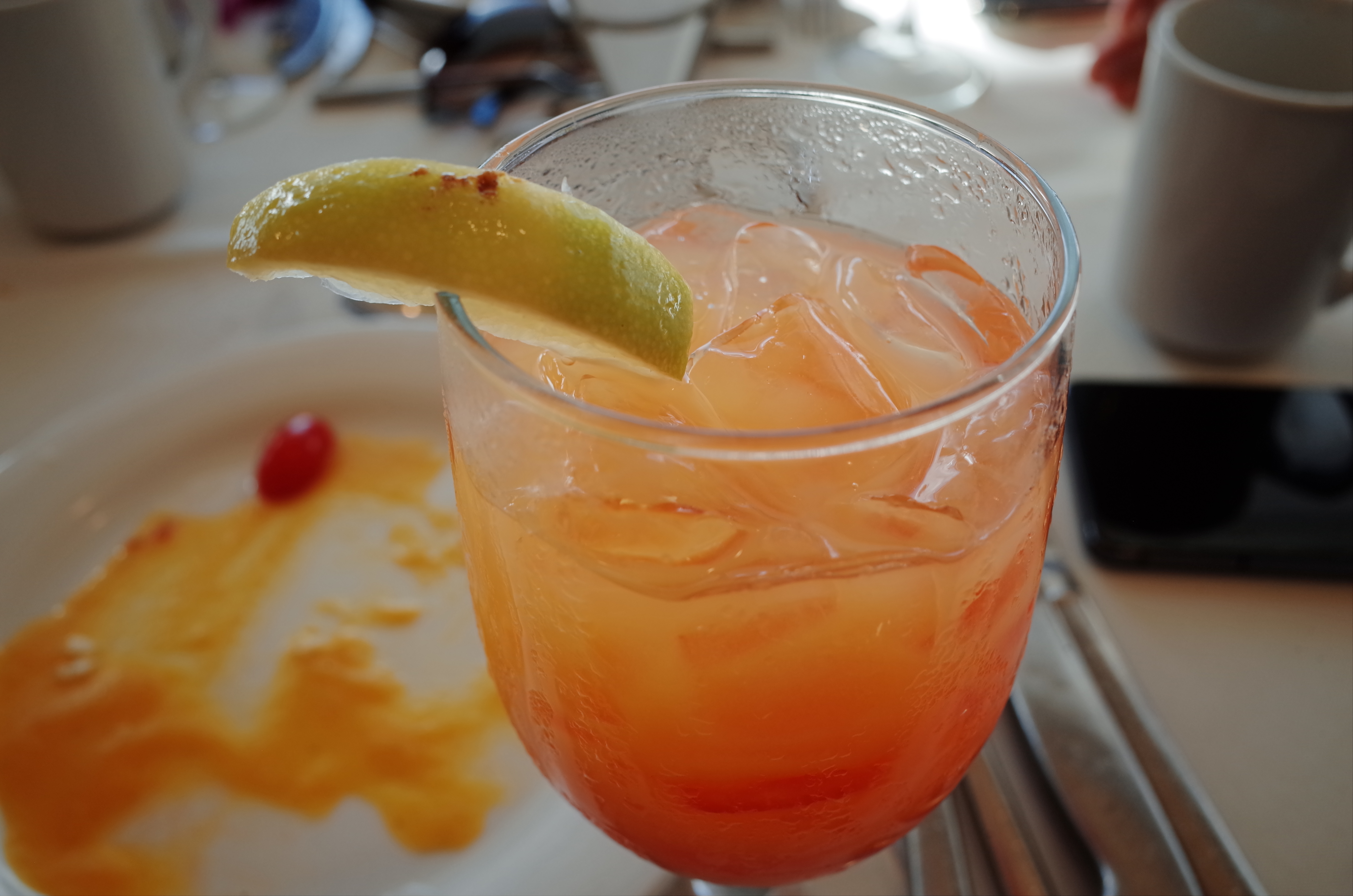 음료가 예쁘죠? 음료쿠폰은 칵테일과 와인 등 여러 가지 스페셜드링크를 원하는 때에 가져다 달라고 하면서 사용하시면 됩니다. 저 오른쪽의 파란색 음료 이름이 블루하와이였던 것 같은데 달달하니 맛있습니다. 어린이들이 좋아할 만한 맛입니다. 사이드 쪽에 과자와 과일, 치즈등이 놓여했는데 뷔페처럼 마음껏 이용할 수 있습니다.