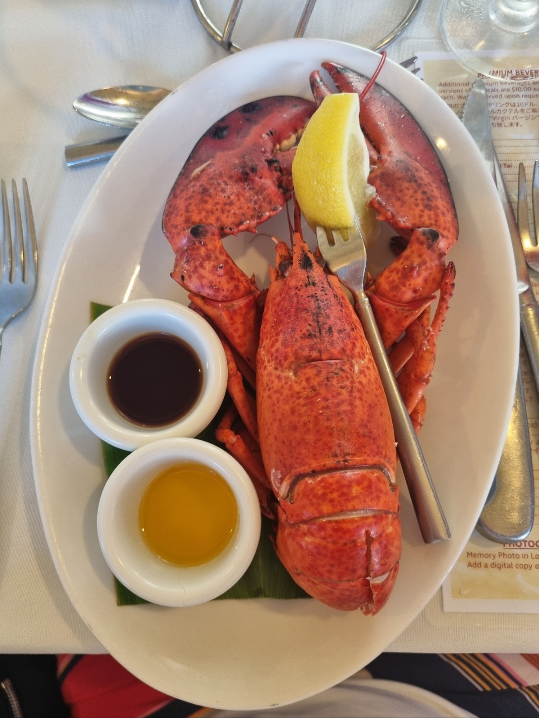 랍스터가 나왔습니다. 운이 좋으신 분은 알이 들어있는 랍스터를 받으실 수 있습니다. 1인 1 랍스터로 배가 슬슬 불러옵니다.