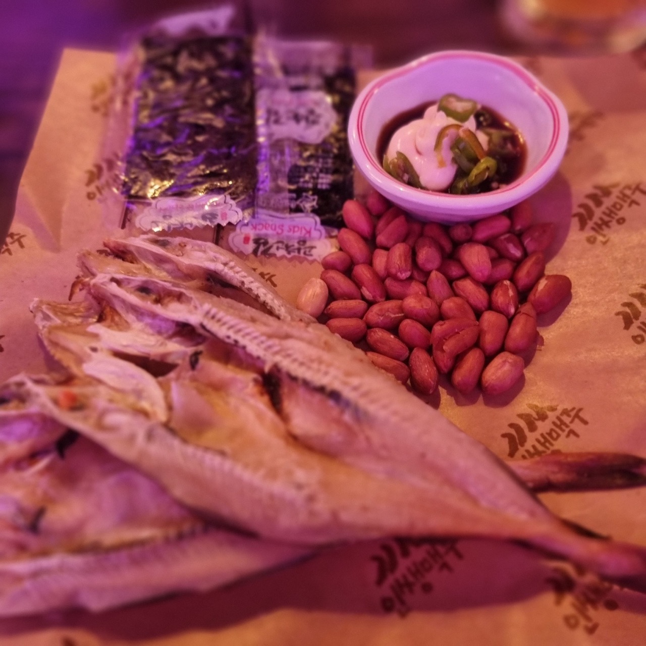 자. 이제 신나게 노가리를 까면서 인생얘기를 하다보면 어느새 노가리도 김도 땅콩도 다 사라져요. 즐거운 저녁시간입니다.