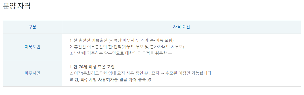위에서 추모관은 이북도민을 대상으로 하고, 봉안당이 파주시민을 대상으로 합니다.