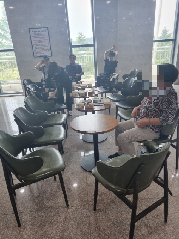이곳은 지하 1층의 제례실이에요. 세어보니 제사를 지낼 수 있는 곳이 20석 있더라고요. 제사 지내는 곳 아래쪽으로 앉으실 수 있는 테이블과 의자도 마련되어 있어요. 저희는 집에서 다 준비해 갔는데 몇 가지 물품이 사용가능하네요.
