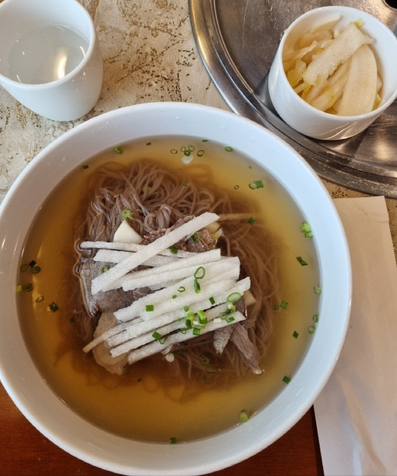 평양냉면의 핵심은 심심하면서 중독성있는 육수죠. 한번 맛보면 호불호가 갈리는 맛입니다. 처음에 실망할 수 있어요. 하지만 생각납니다. 왠지 모르게 생각나요. 날씨 더울때, 뭔가 먹고 싶은데 뭘 먹을지 모를때 말이죠 .