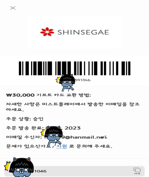 미스트플레이 게임하고 포인트로 신세계상품권 바꿈