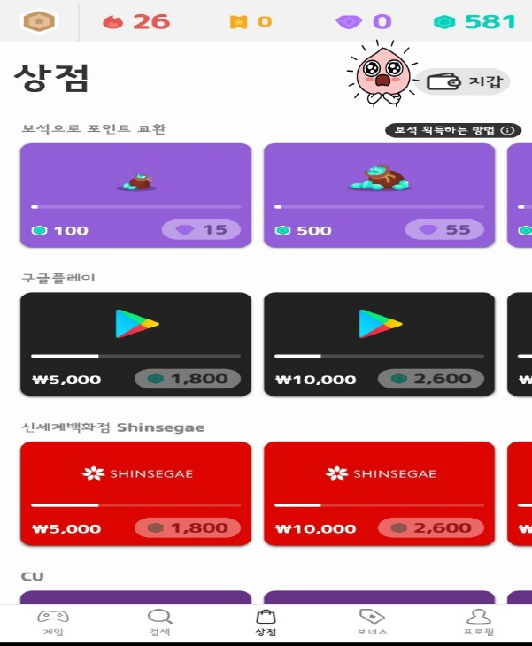 오늘 저는 그동안 미스트플레이로 열심히 게임해서 모은 포인트를 신세계백화점 상품권으로  바꾸고 왔어요. 제가 해본 게임 중에서 포인트가 가장 빨리 쌓이는 것 같고, 현실적으로 앱테크가 가능한 게임이라고 생각합니다. 제 다른 글에는 여러 종류의 게임으로 빠르게 보상을 받는 방법이 있으니 아래 내용을 천천히 읽어보시고 추가로 알아보세요.