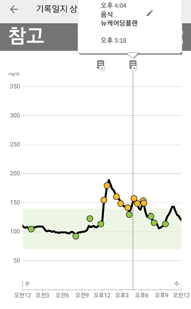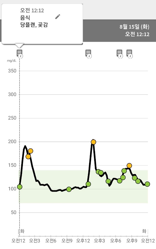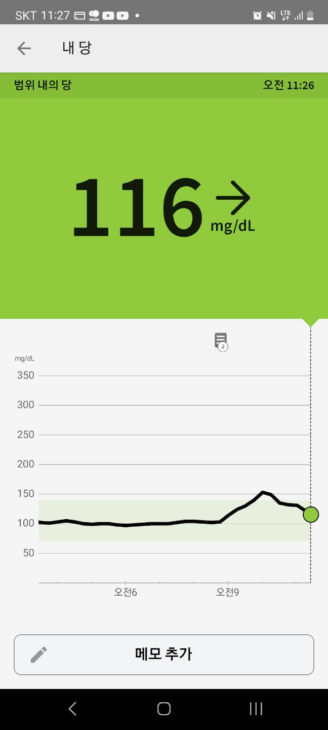 점심 전에 다시 체크를 해봤는데, 별다른 것을 하지는 않았는데 혈당 수치가 다시 돌아왔네요. 이제 점심을 먹으면 다시 오르겠죠? 오늘도 산책을 해야겠습니다.