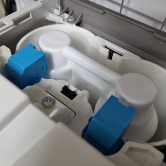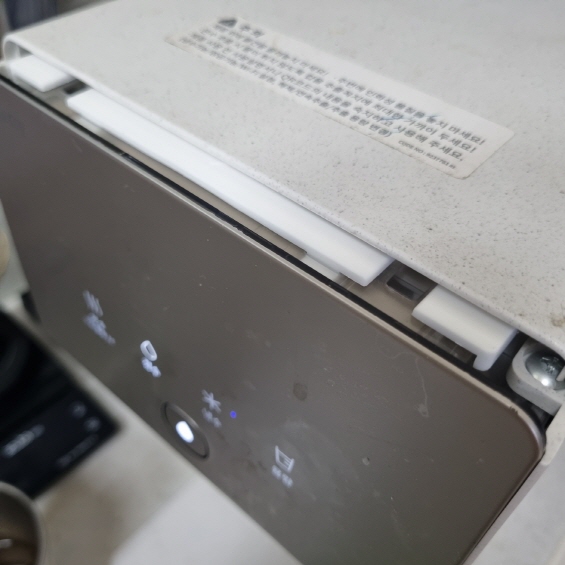 교체가 완료되면 정수버튼을 길게 눌러서 필터에 물이 통하도록 약 5분 정도 물을 흘려주면 됩니다.