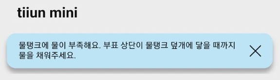 위의 tiiun mini에 들어가면 물부족 상태에서 추가로 다음과 같이 알람이 표시된 세부 내용을 확인 할 수 있어요.