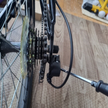 기어가 변속이 된다면 이제 가장 큰 톱니로 체인을 이동시켜야 하는데요. 이때 기존에 14-28T를 사용하고 있었다면 마지막 34T에 가지 못하고 변속이 안 될 수 있습니다. 이 경우 L 나사를 조절해야 해요. L 나사를 조절해서 새로 장착한 가장 큰 스프라켓과 변속기의 기어가 일직선에 오도록 해주셔야 합니다.