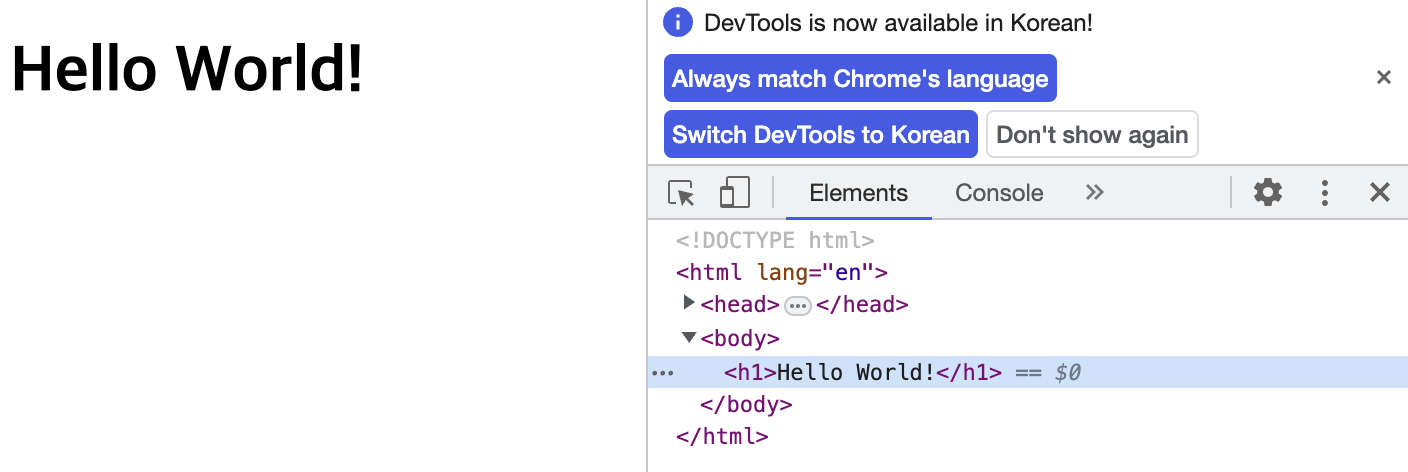 - "Hello, World!"라는 텍스트가 표시되는 것을 확인할 수 있습니다.