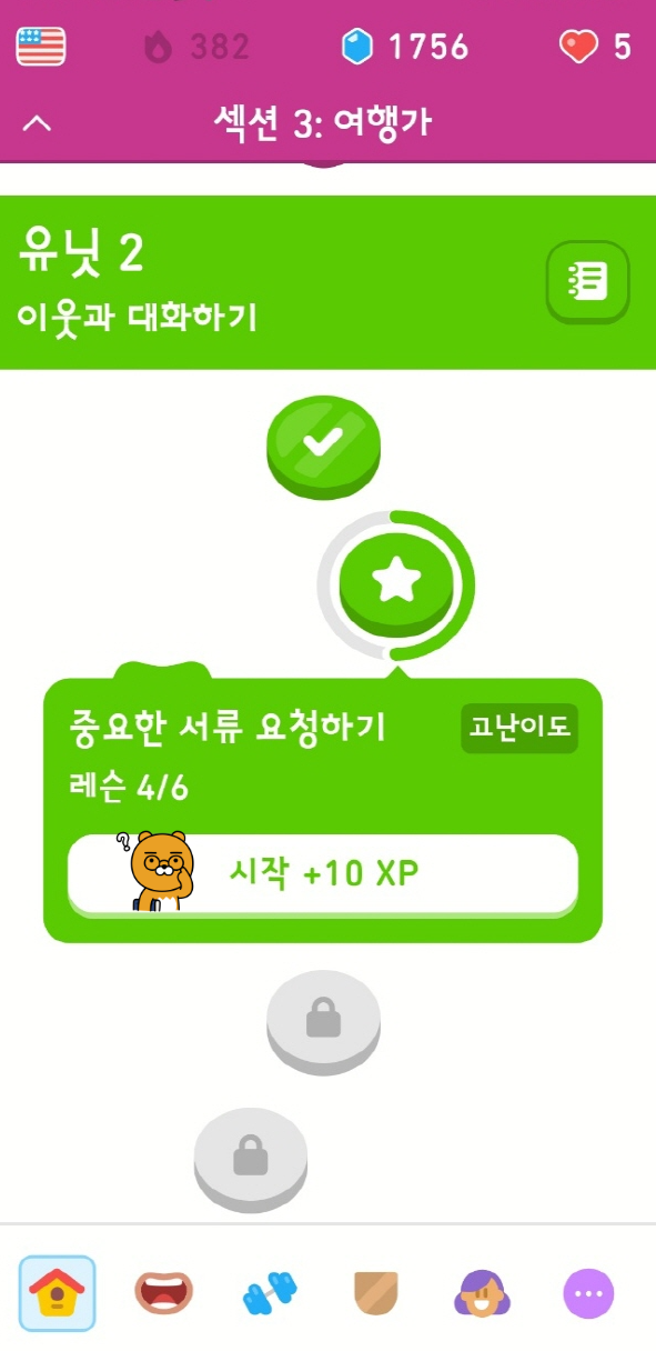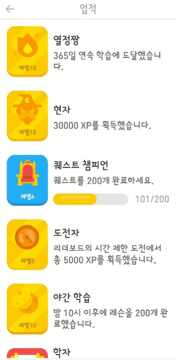 듀오링고는 무료어플인 데다가 이렇게 재미있는 요소들이 있다 보니 꾸준히  공부할 수 있는 것 같아요.
